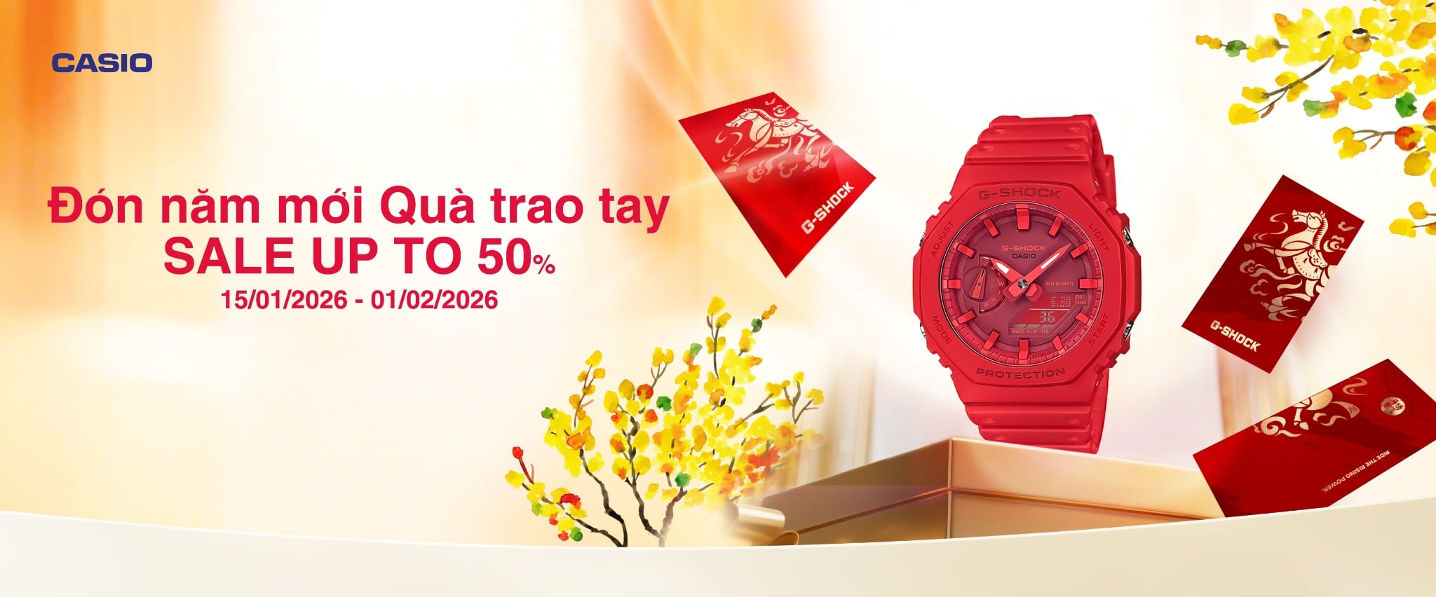 Đặc biệt, khi mua sắm trong thời điểm khuyến mãi đầu năm, khách hàng có cơ hội sở hữu sản phẩm chính hãng với mức giá tối ưu hơn, đồng thời vẫn hưởng đầy đủ chế độ bảo hành theo tiêu chuẩn Casio.