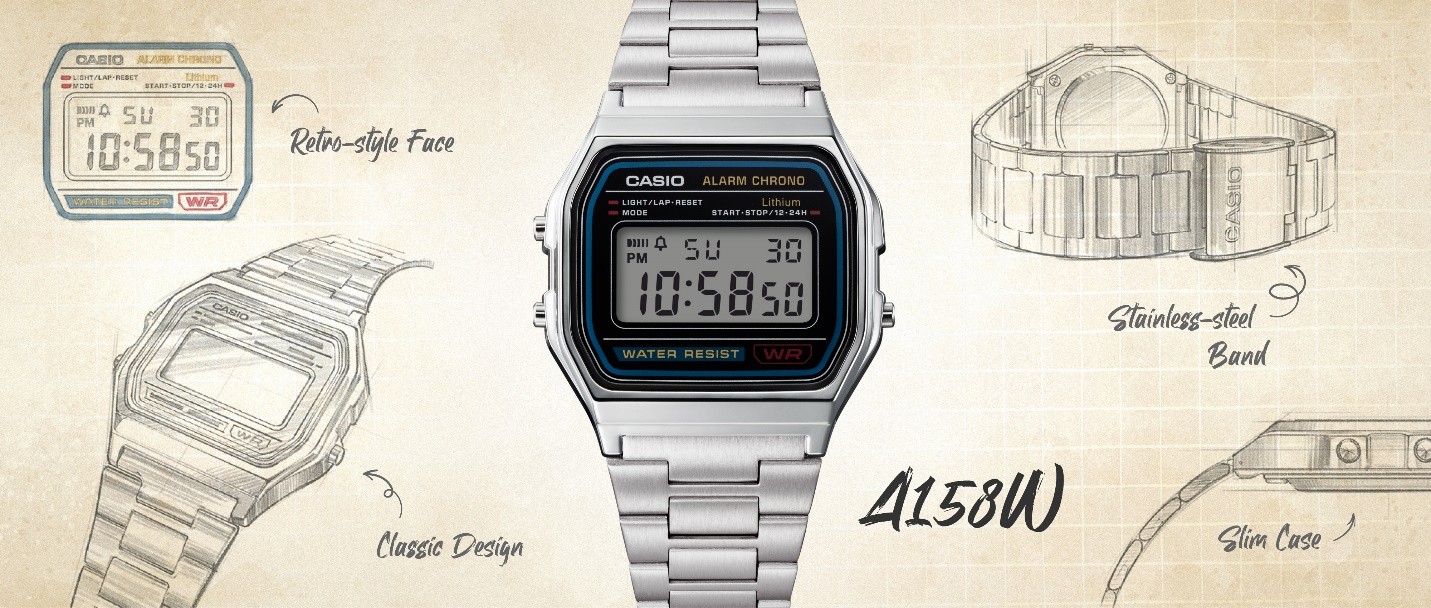 Thiết kế này lấy cảm hứng từ mẫu A158, một trong những dòng sản phẩm bán chạy và được ưa chuộng từ lâu của Casio - Ảnh Casio Watch Vietnam – Anh Khuê Watch.